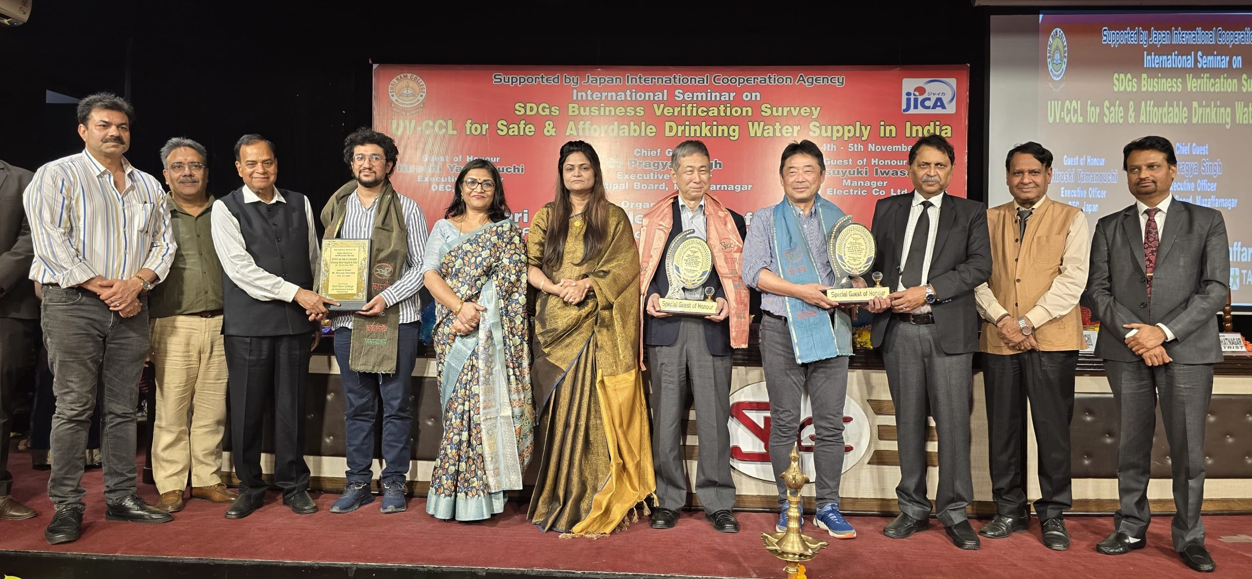 मुजफ्फरनगर । श्रीराम ग्रुप आफ कॉलेजज के सभागार में भारत में सुरक्षित और किफायती पेयजल आपूर्ति के लिए सतत विकास व्यवसाय सत्यापन सर्वेक्षण एवं यू0वी0 सी0सी0एल0 तकनीक नामक विषय पर अंतरराष्ट्रीय सेमिनार का आयोजन किया जा रहा है। इस अवसर पर जापान की स्टेनली इलेक्ट्रिक कॉरपोरेशन लिमिटेड एवं जापान की ओ० ई० सी० कंपनी के उच्च स्तर के अधिकारियों ने भाग लेकर सेमिनार में संगोष्ठी का प्रतिनिधित्व किया। सेमिनार का उददेश्य एक अत्याधुनिक जापानी जल-शुद्धिकरण तकनीक है। इसमें अल्ट्रावायलेट किरणों और कैटलिटिक कार्बन लेयर का उपयोग करके पानी से हानिकारक बैक्टीरिया, वायरस, रासायनिक तत्व और अशुद्धियाँ हटाई जाती हैं।