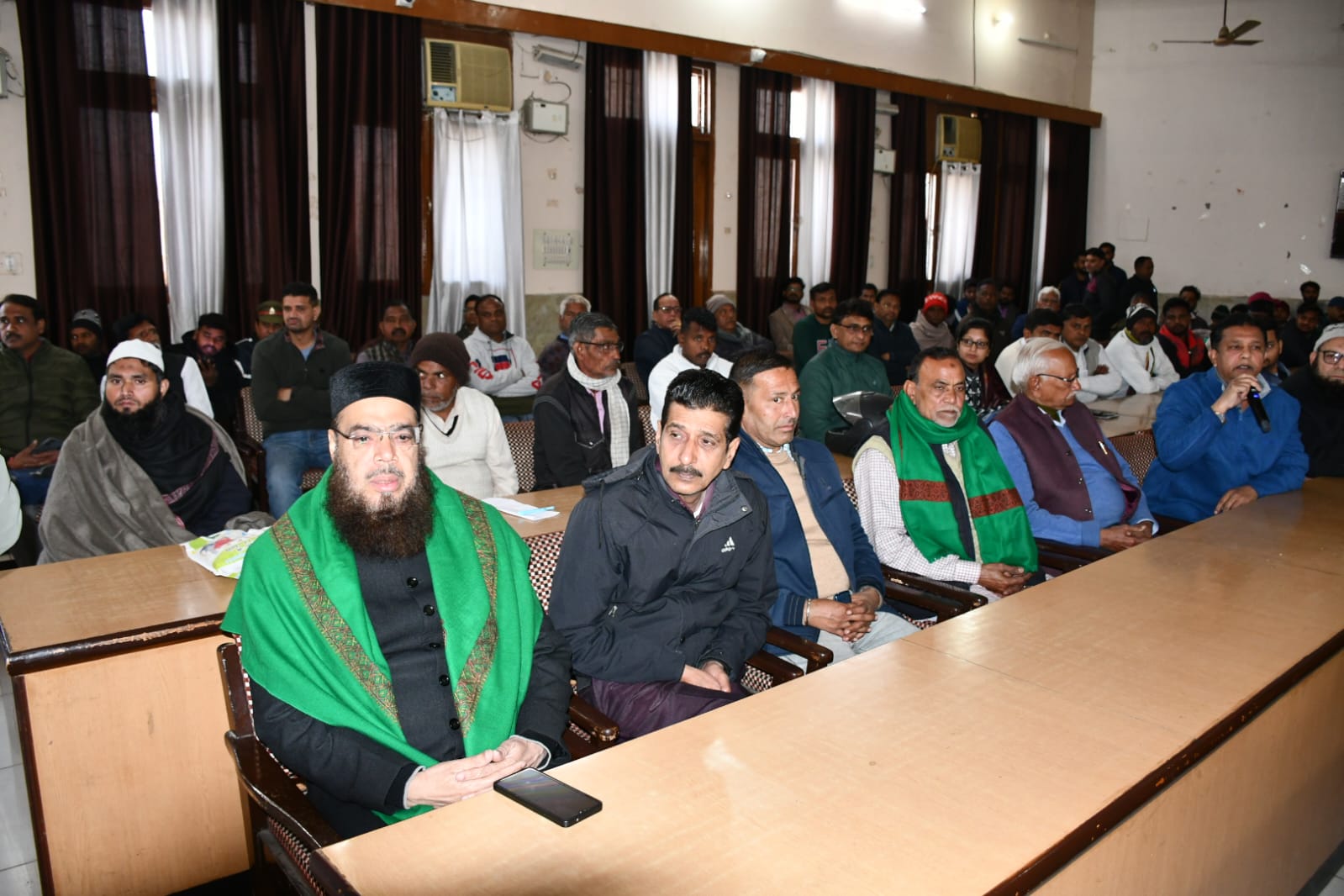 मुजफ्फऱनगर। आगामी पर्व व त्यौहारों (संत रविदास जयंती, शब-ए-बारात) आदि को सकुशल सम्पन्न कराने, कानून एवं शान्ति व्यवस्था बनाये रखने के उद्देश्य से आज दिनांक 30.01.2026 को जिलाधिकारी श्री उमेश मिश्रा तथा वरिष्ठ पुलिस अधीक्षक श्री संजय कुमार वर्मा द्वारा जिला पंचायत सभागार में गणमान्य/संभ्रान्त व्यक्तियों, धर्मगुरुओं के साथ शांति समिति की मीटिंग का आयोजन किया गया। इस अवसर पर पुलिस अधीक्षक नगर श्री सत्यनारायण प्रजापत, पुलिस अधीक्षक ग्रामीण श्री आदित्य बंसल, सिटी मजिस्ट्रेट श्री पंकज प्रकाश राठौर, समस्त क्षेत्राधिकारीगण तथा पुलिस एवं प्रशासन के अन्य अधिकारी/कर्मचारीगण मौजूद रहे।