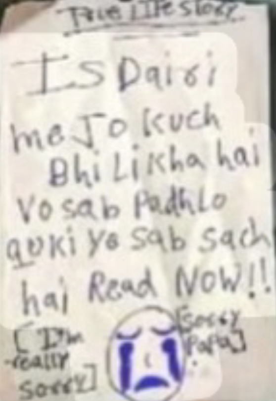 सॉरी पापा, आई एम न्यली सॉरी। यह शब्द गाजियाबाद की न तीन मासूम बेटियों के सुसाइड नोट के हैं, जिन्होंने ऑनलाइन गेम की लत के चलते नौवीं मंजिल की अपनी बालकनी से कूदकर जान दे दी। बान नाबालिग बहनों निशिका (16), ची (14) और पाखी (12) की बत की इस दर्दनाक घटना ने देश को झकझोर दिया है। पुलिस के मुताबिक, मोबाइल फोन की लत और कोरियाई वर गेम से प्रभावित तीनों बहनें फोन छीन लिए जाने से आहत थीं। यह घटना बहिबाबाद के टीलामोड़ की भारत सिटी सोसायटी में मंगलवार देर रात करीब दो जे हुई। पुलिस को किशोरियों के कमरे से पकिट डायरी मिली है, जिसमें बाठ पन्ने का सुसाइड नोट लिखा क्या है। पिता चेतन कुमार ने पुलिस को दिए बयान में बताया कि तीनों हनों को मोबाइल फोन की गंभीर बत थी और रोज घंटों कोरियाई गेम बला करती थीं। तीनों ने अपने कोरियाई म मारिया, अलीजा और सिंडी भी एप लिए थे। चेतन ने बताया, तीनों ने पहले उन्होंने बेटियां से फोन ले लिए थे। इस बात से तीनों बेहद परेशान थीं और छिपकर माता-पिता का फोन इस्तेमाल करती थीं। पुलिस के मुताबिक, किशोरियां टास्क आधारित कोरियाई लव गेम के फेर फंस गई थीं। वह पिछले दो साल स्कूल भी नहीं जा रही थीं। चेतनकुमार ऑनलाइन शेयर ट्रेडिंग करते हैं। वह पिछले तीन साल से भारत सोसायटी में किराये के फ्लैट में दो पत्नियों सुजाता व हिना और पांच बच्चों के साथ रह रहे हैं। आत्महत्या करने वाली किशोरियों में से निशिका, चेतन की पहली पत्नी सुजाताऔर प्राची व पाखी दूसरी पत्नी हिना की बेटियां थीं। चेतन की पहली पत्नी सुजाता से कई वर्ष तक कोई संतान नहीं हुई, तो उन्होंने सुजाता की बहन यानी अपनी साली हिना से शादी कर ली। इसके कुछ ही महीने बाद सुजाता से निशिका का जन्म हुआ। दूसरी पत्नी हिना से प्राची, पाखी व एक और बेटी का जन्म हुआ। बाद में पहली पत्नी से बेटा लविश (7) पैदा हुआ, जो मानसिक रूप से कमजोर है और बोल भी नहीं सकता।