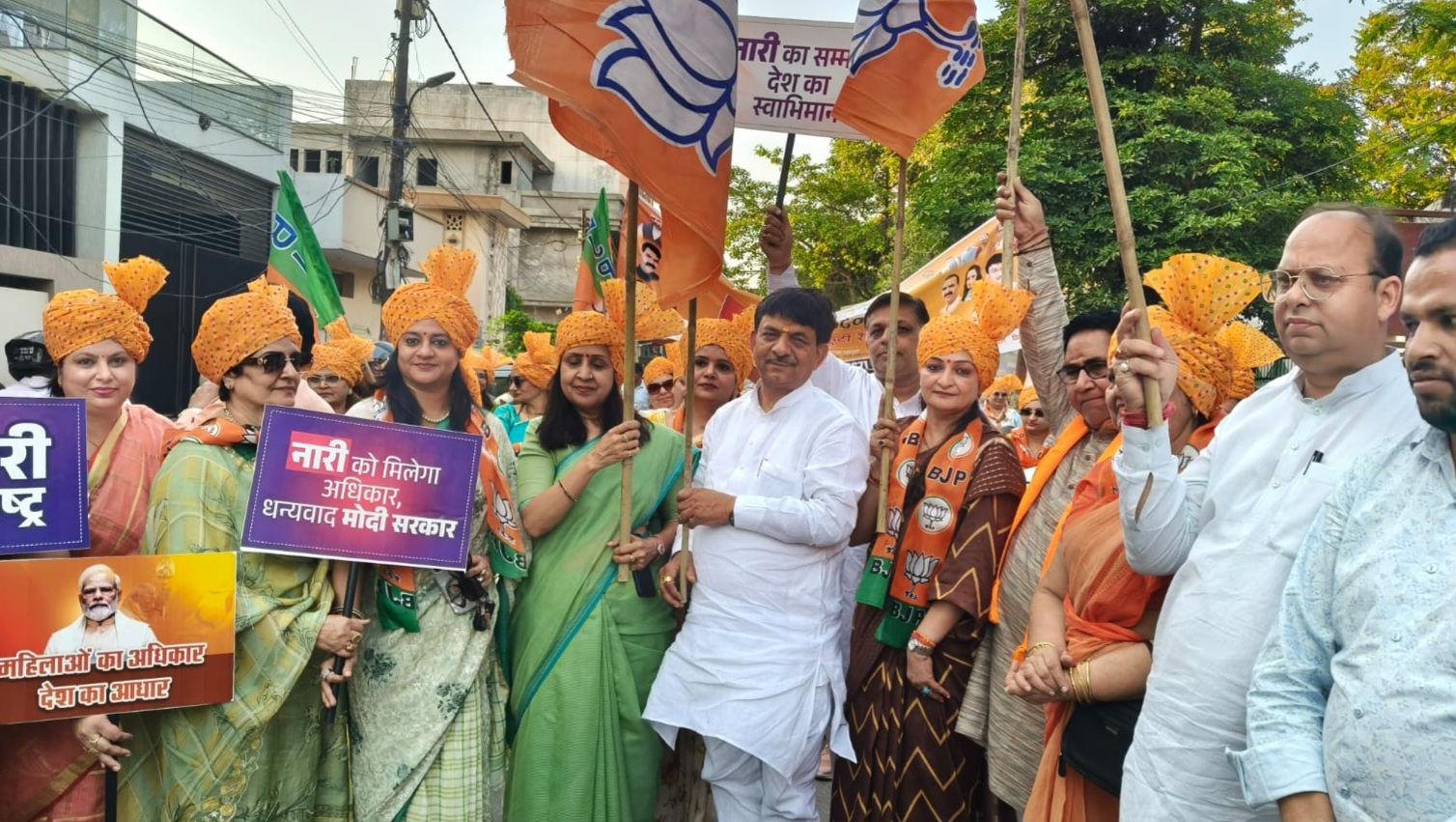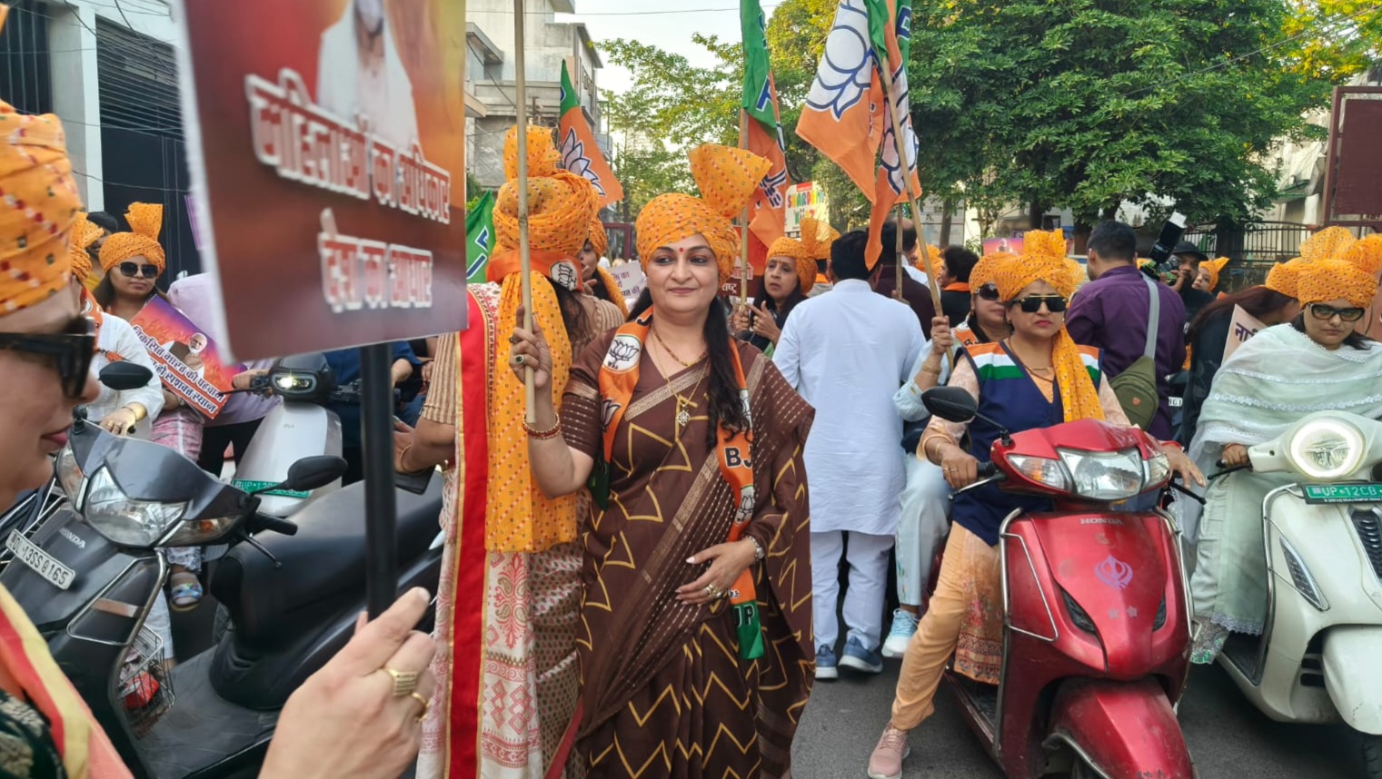 इस नारी शक्ति वंदन स्कूटी रैली में सैकड़ों की संख्या में महिलाएं सिर पर पगड़ी बांधकर स्कूटी लेकर स्कूटी वंदन रैली महिलाओं के सम्मान में निकाल रही है मंत्री कपिल देव अग्रवाल ने बताया कि महिलाओं को आरक्षण देने की पहल करते हुए प्रधानमंत्री नरेंद्र मोदी जी ने पूरे देश में इस स्कूटी वंदन रैली का आह्वान किया है नारी वंदन स्कूटी रैली में मंत्री कपिलदेव अग्रवाल,स्कूटी रैली जिला संयोजक ममता अग्रवाल, जिलाध्यक्ष सुधीर सैनी,नगरपालिका चेयरमैन मीनाक्षी स्वरूप, समाजसेविका प्रेरणा मित्तल,समाजसेविका सोनिया लूथरा ,सभासद मनी पटपटिया सहित आयोजक विशाल गोयल, सोसाइटी चेयरमैन पवन छाबड़ा, बीजेपी कार्यालय प्रभारी पिंटू त्यागी, सहित सेकडो महिला व अन्य बीजेपी नेता मौजूद रहे।