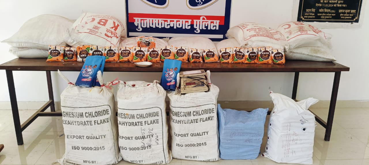 मुजफ्फरनगर। थाना बुढाना पुलिस द्वारा नामचीन कम्पनियों (टाटा, सर्फ एक्सल आदि) के प्रोडक्ट (नमक व सर्फ आदि) के कूटरचित रेपर तैयार कर उनमें कम गुणवत्ता वाला माल भरकर बेचने वाले गिरोह का पर्दाफाश करते हुए 04 अभियुक्तगण को रविदास मन्दिर के पास मीतनगर, दिल्ली व ग्राम खान्जापुर थाना कोतवाली नगर, मुजफ्फरनगर से गिरफ्तार किया गया। अभियुक्तगण के कब्जे से 9500 अदद फर्जी/कूटरचित रैपर “टाटा” नमक व 9300 फर्जी/कूटरचित रैपर “सर्फ एक्सल”, 600 किलोग्राम कम गुणवत्ता वाला नमक, 01नमक पैकिंग मशीन व 01 वजन करने वाला कांटा बरामद किया गया। अभियुक्तगण की गिरफ्तारी व बरामदगी के सम्बन्ध में थाना बुढाना पुलिस द्वारा अग्रिम विधिक कार्यवाही की जा रही है।