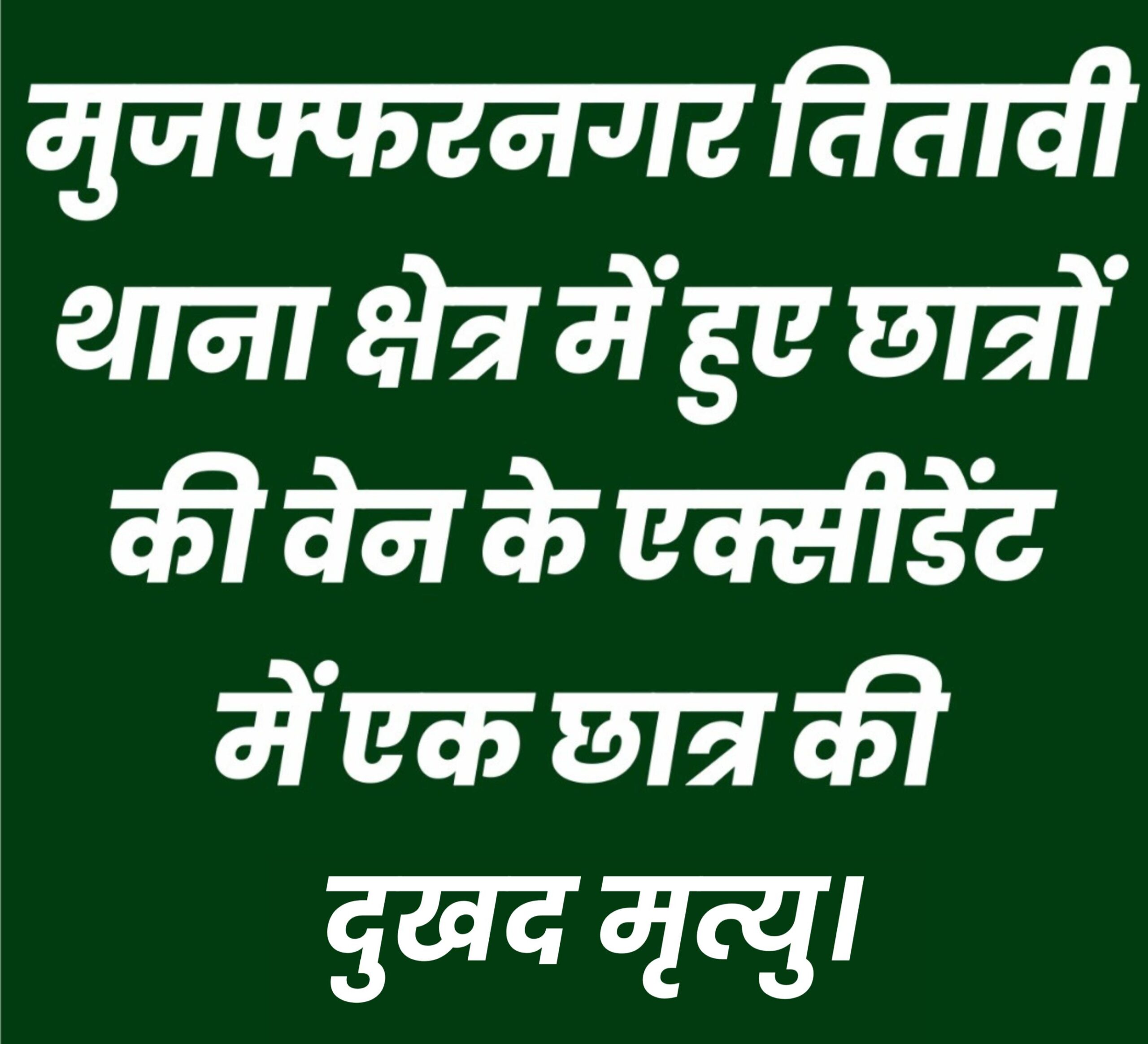 मुजफ्फरनगर तितावी थाना क्षेत्र में हुए स्कूल वैन हादसे में एक छात्रः की उपचार के दौरान मौत December 2, 2024