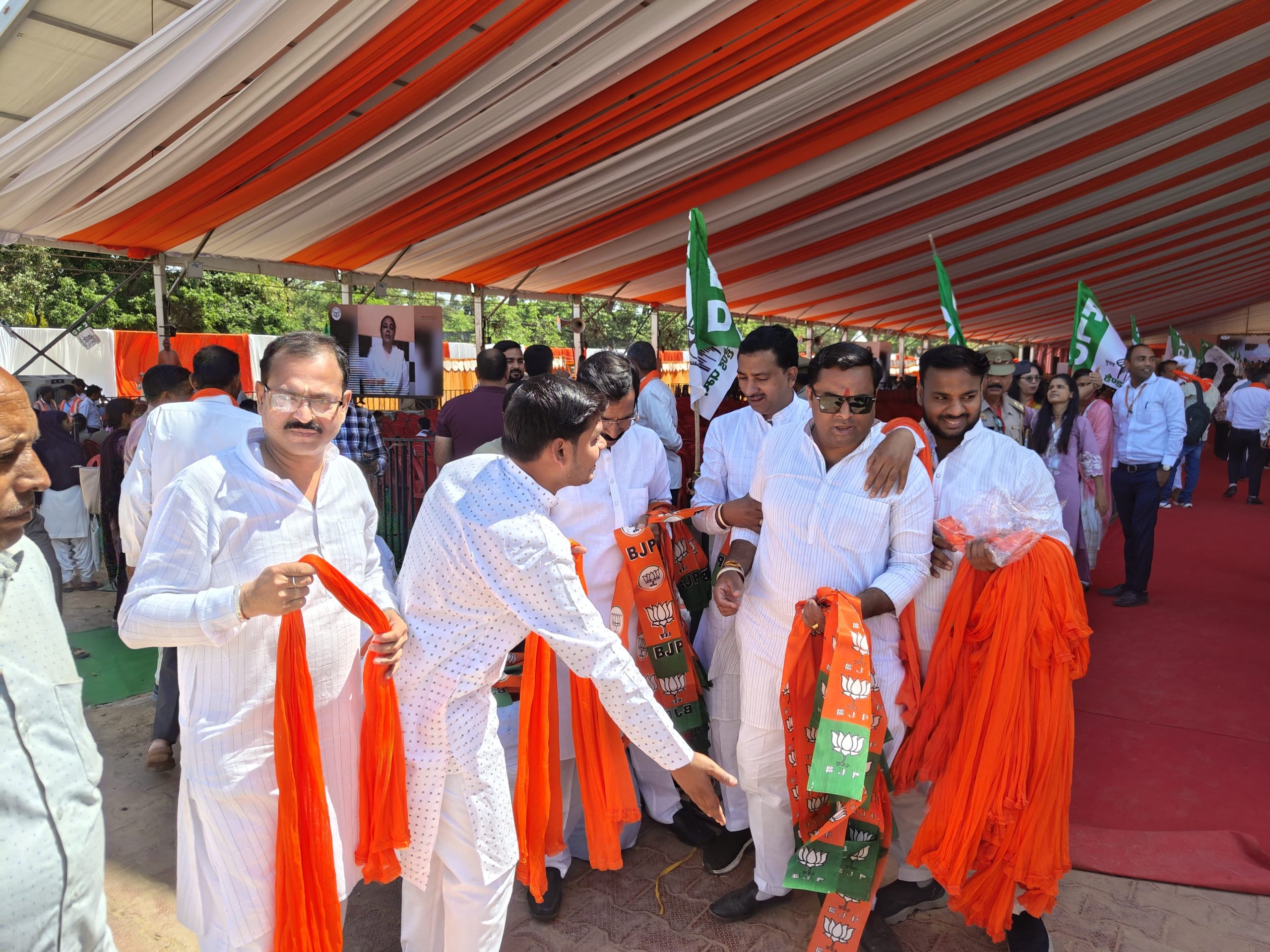 मुजफ्फरनगर योगी की रैली में शामिल होने वालों को भगवा पटके वितरित