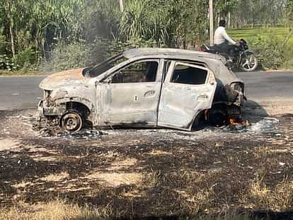 आग का गोला बनी कार, बाल बाल बचे मुजफ्फरनगर के सवार