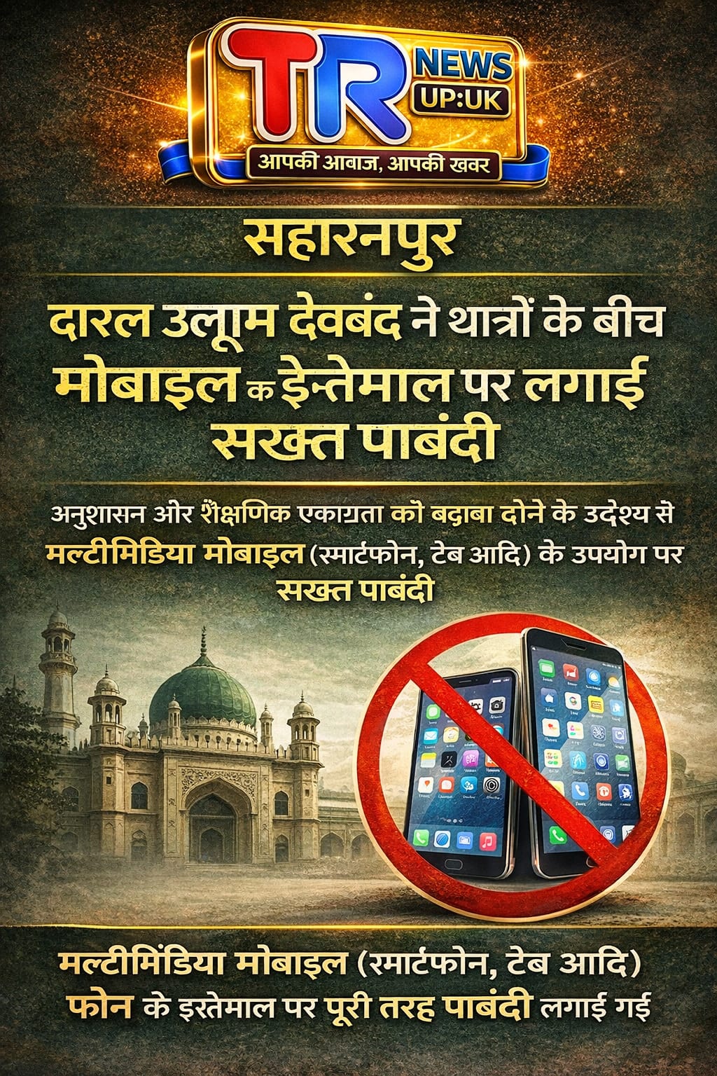 सहारनपुर दारुल उलूम देवबंद ने स्मार्ट फोन पर लगाई पाबंदी